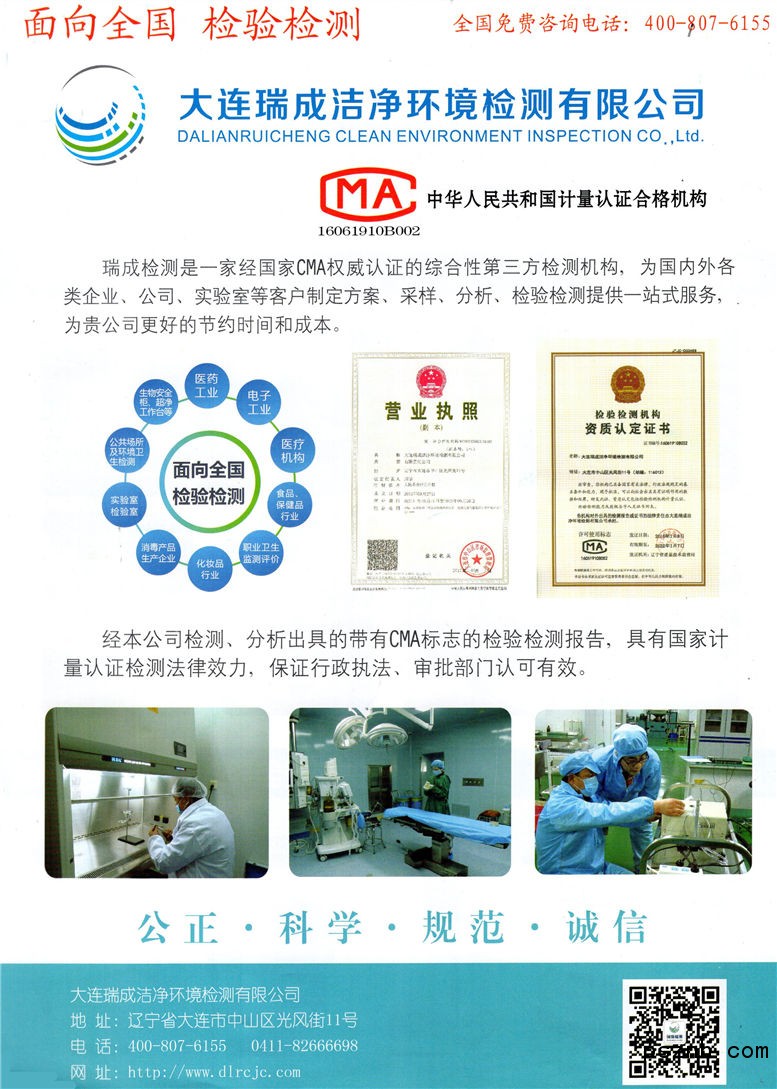 大連瑞成潔凈環境檢測有限公司 性能檢測_設備檢測_技術咨詢點擊:588 查看原圖![]() ![]() ![]() 大連瑞成潔凈環境檢測有限公司