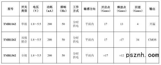 中國(guó)江蘇省張家港市2018年8月9日電 江蘇多維科技有限公司(MultiDimension Technology Co., Ltd., MDT)日前推出納安級(jí)超低功耗、高頻率響應(yīng)和寬溫區(qū)的TMR1162/TMR1262/TMR1362系列磁開(kāi)關(guān)傳感器,其主要特點(diǎn)包括,200nA超低功耗,50Hz頻率響應(yīng),-40~125℃的工作溫度范圍,良好的抗外磁場(chǎng)干擾特性,SOT-23或TO-92或LGA封裝。
