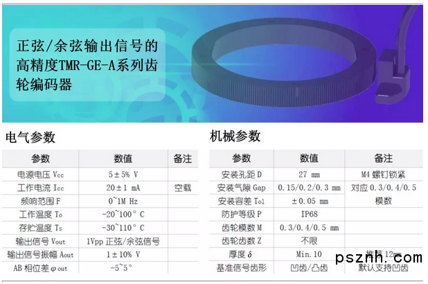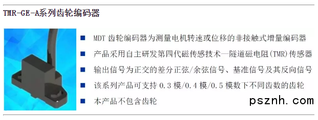 中國張家港2018年6月17日電 -- 專業(yè)的隧道磁阻(TMR)傳感器領(lǐng)先供應(yīng)商江蘇多維科技有限公司(MultiDimension Technology Co., Ltd., MDT)日前推出正弦/余弦輸出信號的高精度TMR齒輪編碼器TMR-GE-A系列。該系列產(chǎn)品包括TMR-GE-A-03、TMR-GE-A-04和TMR-GE-A-05非接觸式增量磁編碼器,分別應(yīng)用于0.3、0.4和0.5模數(shù)的齒輪,輸出信號為高質(zhì)量的1Vpp差分弦波信號,適用于數(shù)控機床、能源和發(fā)電系統(tǒng)、鐵路交通和電梯等需要對電機轉(zhuǎn)速和位移進行精準測量的多種工業(yè)應(yīng)用。