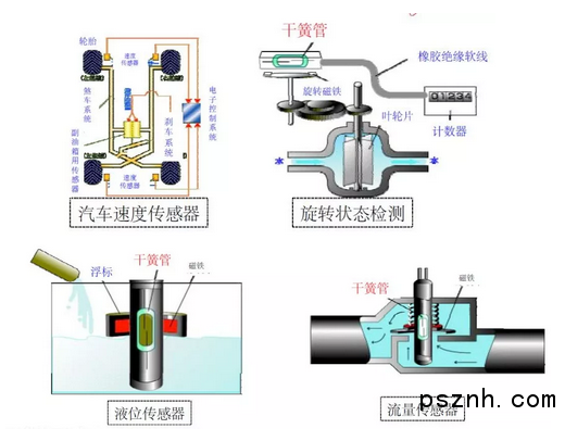 由于金屬簧片觸點被密封在玻璃管內,所以不受外界環境的影響,工作非常穩定;惰性貴金屬觸點的熔點高,能減少電弧放電對觸點表面的損耗,所以能維持較長時間的工作壽命;利用永久磁鐵能容易地控制簧片開關,是一種高性能低價格的理想電子零部件。