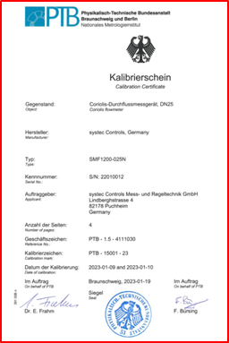 由西斯特送檢的科氏質量流量計,日前通過德國聯邦物理技術研究院(PTB)的檢定認證。