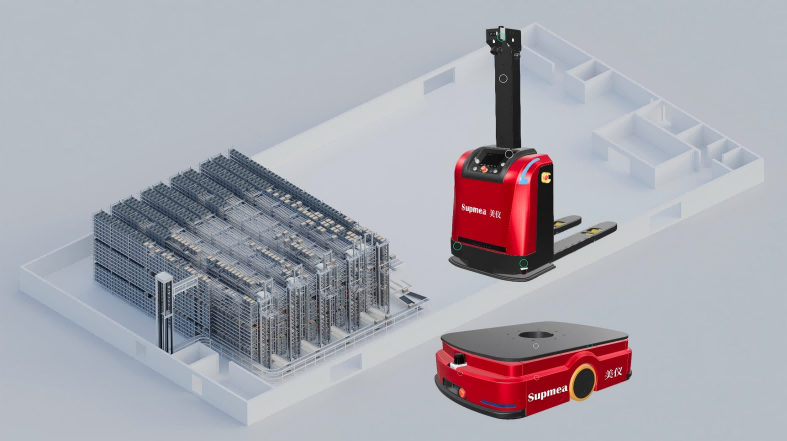 同時(shí),4臺(tái) AGV 也已同步部署運(yùn)行,包括2臺(tái)潛伏式用于線邊配送、2臺(tái)叉車(chē)式用于大件搬運(yùn)。系統(tǒng)采用SLAM激光導(dǎo)航技術(shù),具備自主路徑規(guī)劃與智能避障能力,可實(shí)現(xiàn)7×24小時(shí)連續(xù)作業(yè)。