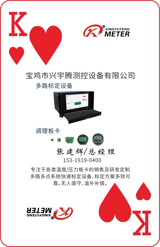 《2020圖頁儀表行業撲克牌》推出就得到寶雞市興宇騰測控設備有限公司張建輝的認同和支持,張總的興宇騰測控積極認領了紅桃作為此次的公司的專屬牌!