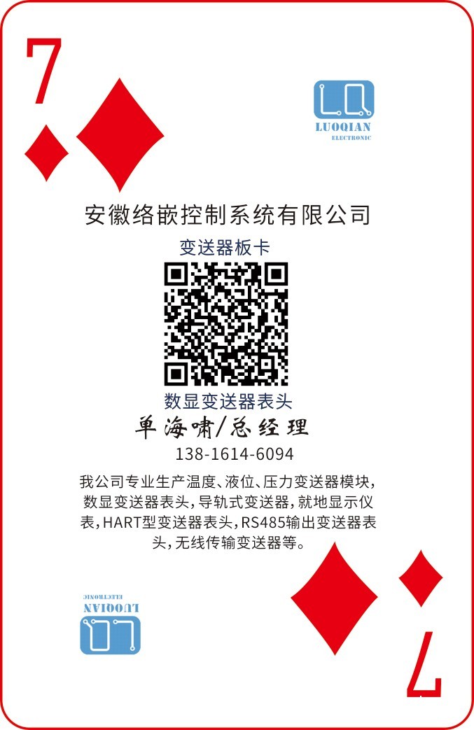 《2020圖頁儀表行業撲克牌》推出就得到  安徽絡嵌控制系統有限公司總經理 單海嘯的認同和支持, 安徽絡嵌控制系統積極認領了方塊7作為此次的公司的專屬牌!