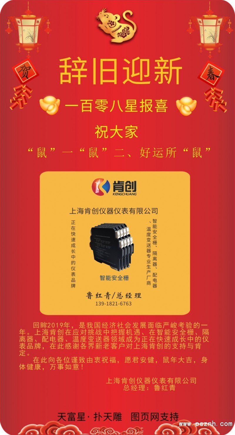 在此感謝各界新老客戶對上海肯創(chuàng)的支持與肯定。在此向各位謹致由衷祝福,愿君安健,鼠年大吉,身體健康,萬事如意!