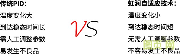 虹潤(rùn)自適應(yīng)控制技術(shù)可自動(dòng)整定出較佳PID值。監(jiān)視裝備的溫度控制狀態(tài),自動(dòng)調(diào)節(jié)PID值,對(duì)工件變化及裝備變化、環(huán)境變化等進(jìn)行較佳溫度控制。