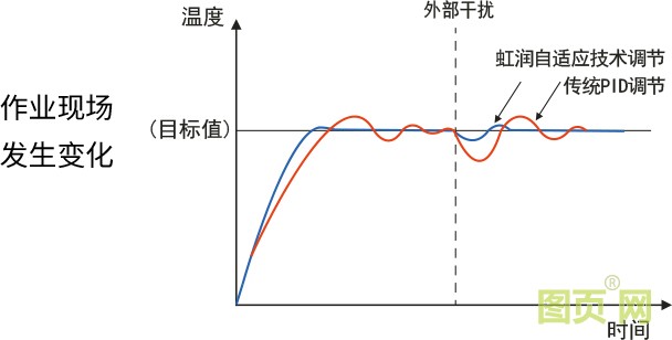 虹潤(rùn)自適應(yīng)技術(shù)自動(dòng)抑制常規(guī)干擾引起的溫度波動(dòng),針對(duì)開(kāi)關(guān)艙室門(mén)時(shí)外部空氣的流入等可預(yù)測(cè)的溫度波動(dòng),穩(wěn)定地進(jìn)行自動(dòng)控制。提高品質(zhì),縮短溫度變化穩(wěn)定所需的時(shí)間,且將溫度波動(dòng)控制在較小限度,為提高生產(chǎn)能力做出貢獻(xiàn)。