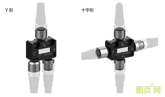 ▲配線引出接插型型號(hào)可通過(guò)使用連接器(Y形,十字形)和延長(zhǎng)線纜來(lái)顯著減少工時(shí)。當(dāng)使用十字形連接器時(shí),即使連接了多個(gè)安全非接觸式開(kāi)關(guān),每個(gè)開(kāi)關(guān)都將提供輔助輸出以進(jìn)行監(jiān)控。