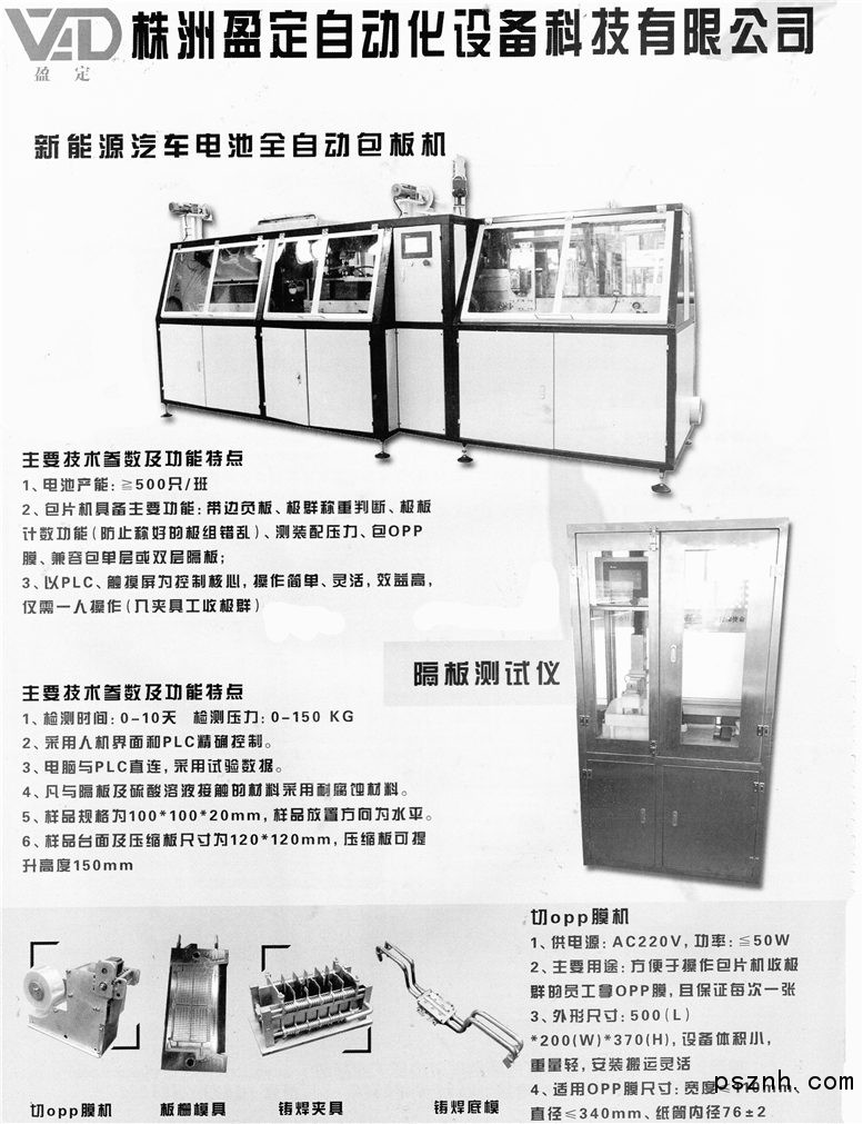 株洲盈定自動化設備科技有限公司 _鉛酸蓄電池系列全自動包板機_中大密燒焊入槽機_鉛零件澆鑄機_切opp膜機_隔板紙彈力檢測儀_鉛錠冷切造粒機_板柵模_鑄焊模具及夾具點擊:2337 評論:0 查看原圖 |