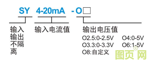 例 1: 輸入信號:4-20 mA ;輸出信號:0-5V; 產品型號: ISO 4-20mA-O4
