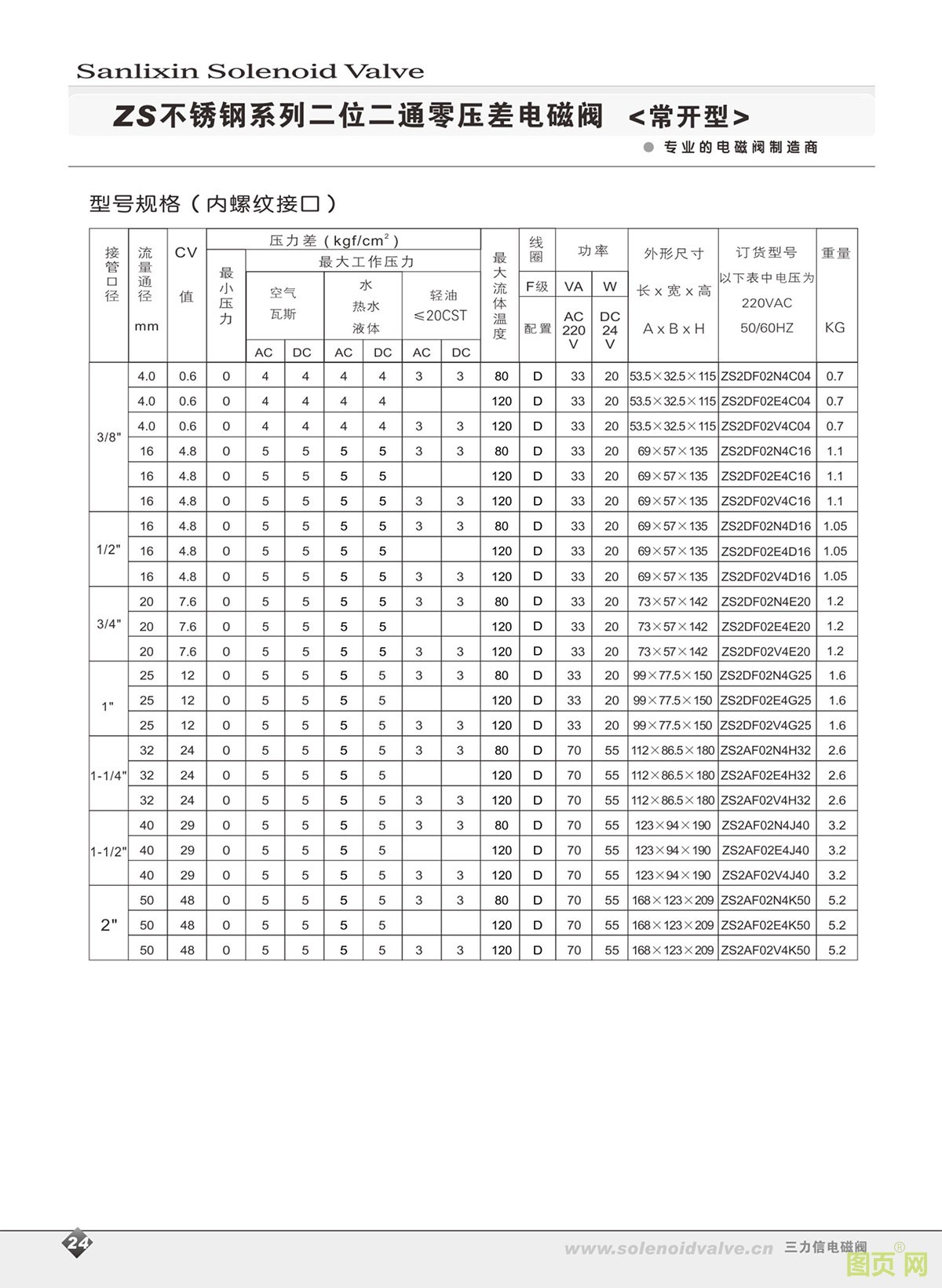 本網頁所展示的有關【三力信_ZS二位二通直動式電磁閥/常開型 _電磁閥】的信息/圖片/參數等由的會員【余姚市三力信電磁閥有限公司 】提供,由圖頁網會員【余姚市三力信電磁閥有限公司 】自行對信息/圖片/參數等的真實性、準確性和合法性負責,本平臺(本網站)僅提供展示服務,請謹慎交易,因交易而產生的法律關系及法律糾紛由您自行協商解決,本平臺(本網站)對此不承擔任何責任。您在本網頁可以瀏覽【三力信_ZS二位二通直動式電磁閥/常開型 _電磁閥】有關的信息/圖片/價格等及提供 【三力信_ZS二位二通直動式電磁閥/常開型 _電磁閥】的商家公司簡介、聯系方式等信息。
