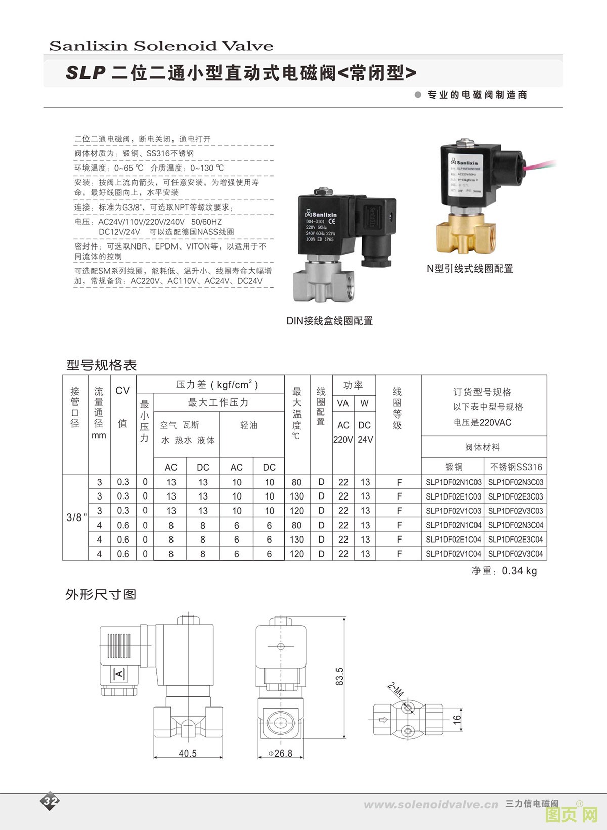 本網頁所展示的有關【三力信_SLP二位二通小型直動式電磁閥/常閉型_電磁閥】的信息/圖片/參數(shù)等由的會員【余姚市三力信電磁閥有限公司 】提供,由圖頁網會員【余姚市三力信電磁閥有限公司 】自行對信息/圖片/參數(shù)等的真實性、準確性和合法性負責,本平臺(本網站)僅提供展示服務,請謹慎交易,因交易而產生的法律關系及法律糾紛由您自行協(xié)商解決,本平臺(本網站)對此不承擔任何責任。您在本網頁可以瀏覽【三力信_SLP二位二通小型直動式電磁閥/常閉型_電磁閥】有關的信息/圖片/價格等及提供 【三力信_SLP二位二通小型直動式電磁閥/常閉型_電磁閥】的商家公司簡介、聯(lián)系方式等信息。