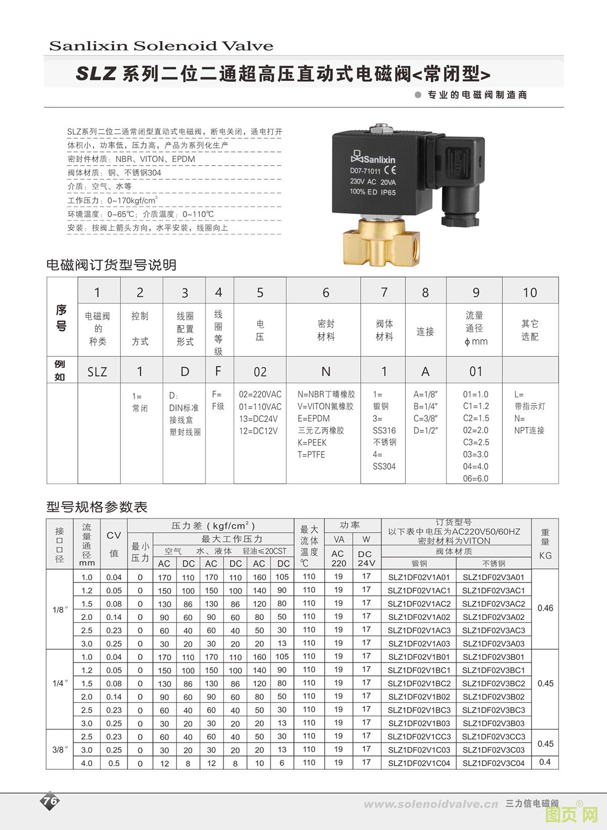 】自行對(duì)信息/圖片/參數(shù)等的真實(shí)性、準(zhǔn)確性和合法性負(fù)責(zé),本平臺(tái)(本網(wǎng)站)僅提供展示服務(wù),請謹(jǐn)慎交易,因交易而產(chǎn)生的法律關(guān)系及法律糾紛由您自行協(xié)商解決,本平臺(tái)(本網(wǎng)站)對(duì)此不承擔(dān)任何責(zé)任。您在本網(wǎng)頁可以瀏覽【三力信_(tái)SLZ 系列二位二通高壓直動(dòng)式電磁閥/常閉型_電磁閥】有關(guān)的信息/圖片/價(jià)格等及提供