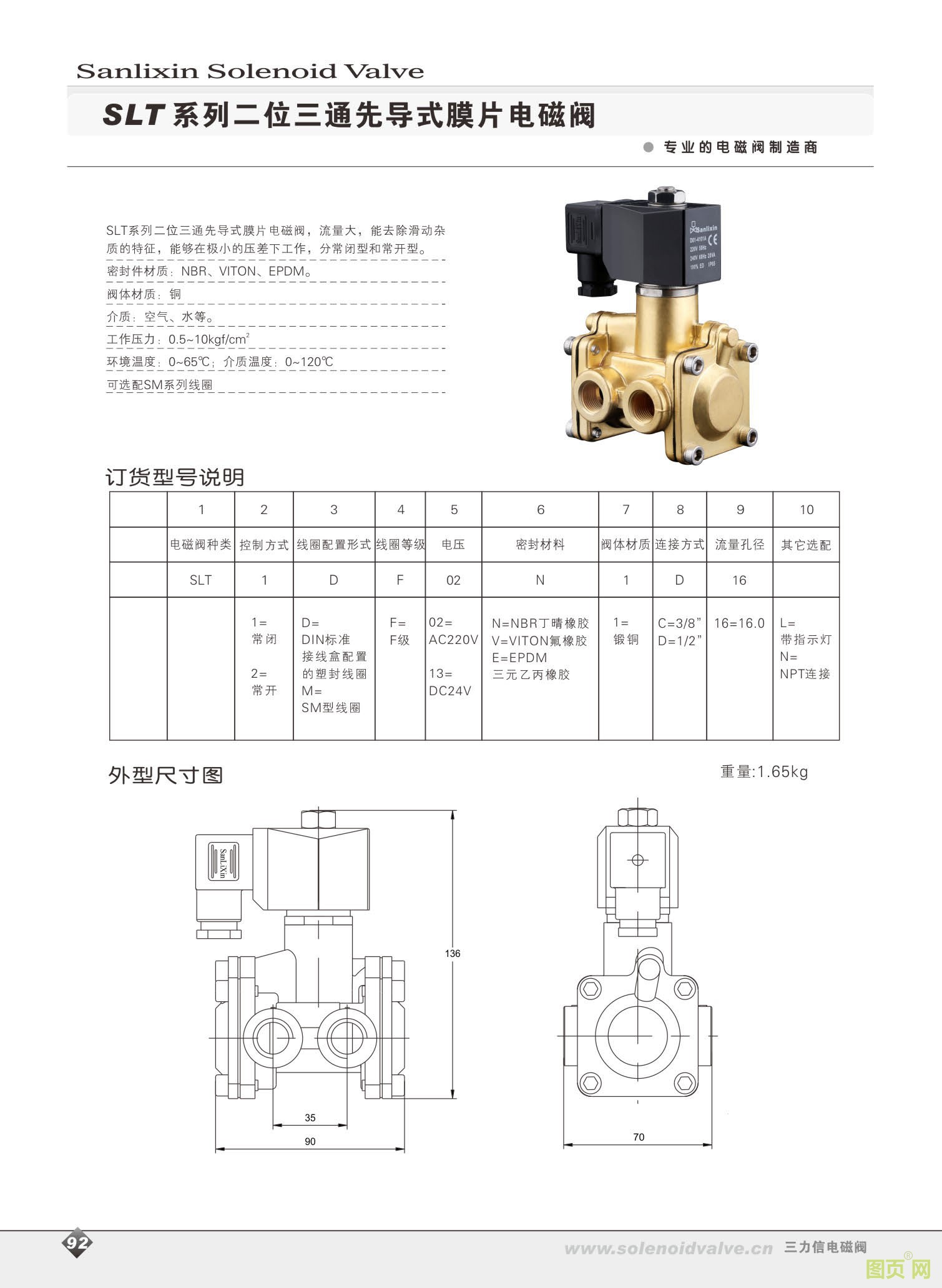 本網頁所展示的有關【三力信_SLT系列二位三通先導式膜片電磁閥_電磁閥】的信息/圖片/參數等由的會員【余姚市三力信電磁閥有限公司 】提供,由圖頁網會員【余姚市三力信電磁閥有限公司 】自行對信息/圖片/參數等的真實性、準確性和合法性負責,本平臺(本網站)僅提供展示服務,請謹慎交易,因交易而產生的法律關系及法律糾紛由您自行協商解決,本平臺(本網站)對此不承擔任何責任。您在本網頁可以瀏覽【三力信_SLT系列二位三通先導式膜片電磁閥_電磁閥】有關的信息/圖片/價格等及提供 【三力信_SLT系列二位三通先導式膜片電磁閥_電磁閥】的商家公司簡介、聯系方式等信息。