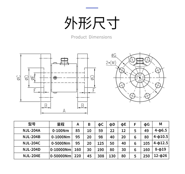 | 測量范圍 | 0~0.2,0.3,0.5,1,2,3,5,10,20,30,50,100Nm (NJL-204A) 0~200/300/500/1000Nm(NJL-204B) 0~2000/3000/5000Nm(NJL-204C) 0~10000Nm(NJL-204D) 0~20000/30000/50000Nm(NJL-204E) |
