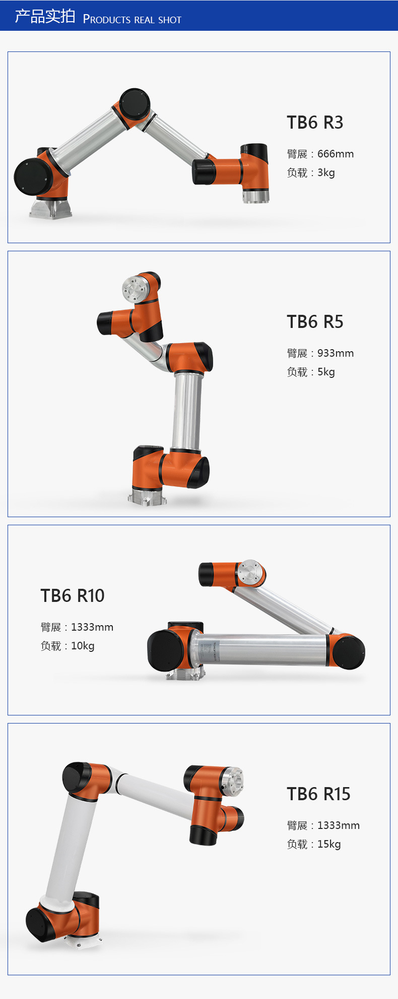 深圳泰科智能TB6系列協作機器人是泰科智能自主研發的6軸輕型協作機器人,具有拖動示教、安全防碰撞等功能,可以直接與人協同工作。采用自主設計研發RJSII系列關節模組,既輕便靈活、運行平滑柔順,同時滿足負荷的需求。防護等級高,可適用于更多苛刻的工作環境,既有強大的通用性、 協作性與開放性,廣泛應用于物流裝配、流水線生產、上下料、AGV、3C電子、科研、醫療等行業領域。安裝簡單(安裝方式任意角度)及用途多樣化,提升產品品質和生產效率,并更好的節約人工成本。