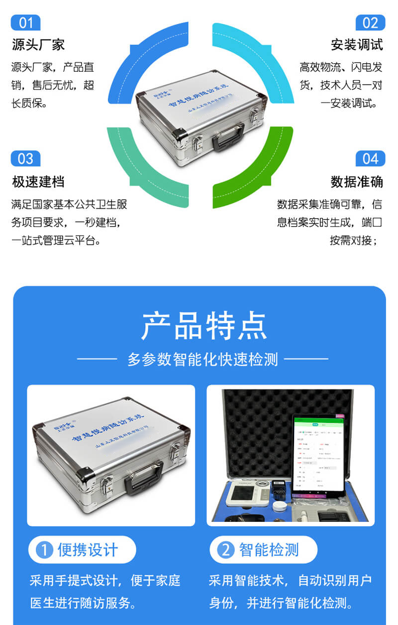 在功能優勢方面,上正華瑞公衛隨訪包的應用有助于提高慢病管理的效率和質量。通過快速、準確的數據檢測和收集,醫務人員能夠及時發現患者的健康問題并進行干預,降低慢病的發病率和并發癥的風險。同時,隨訪包的使用也有助于提高患者的健康意識和自我管理能力,促進患者積極參與慢病管理過程。