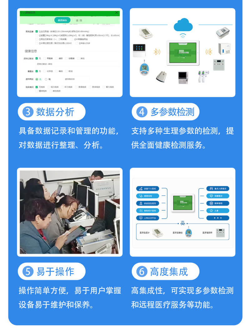 其次,上正華瑞公衛隨訪包集成了多種健康監測功能,如血壓、血糖、心電圖等。在隨訪過程中,醫務人員可以快速進行基礎健康數據的檢測和收集,獲取患者當前的健康狀況信息。同時,這些數據還可以自動上傳至健康管理云平臺,實現數據的實時更新和共享,便于醫護人員進行遠程管理和分析。