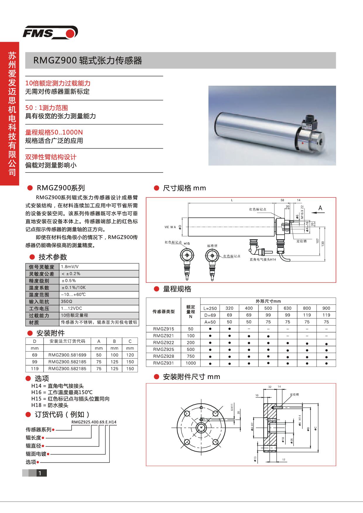 瑞士FMS 懸臂張力傳感器 RMGZ900 印刷 覆膜