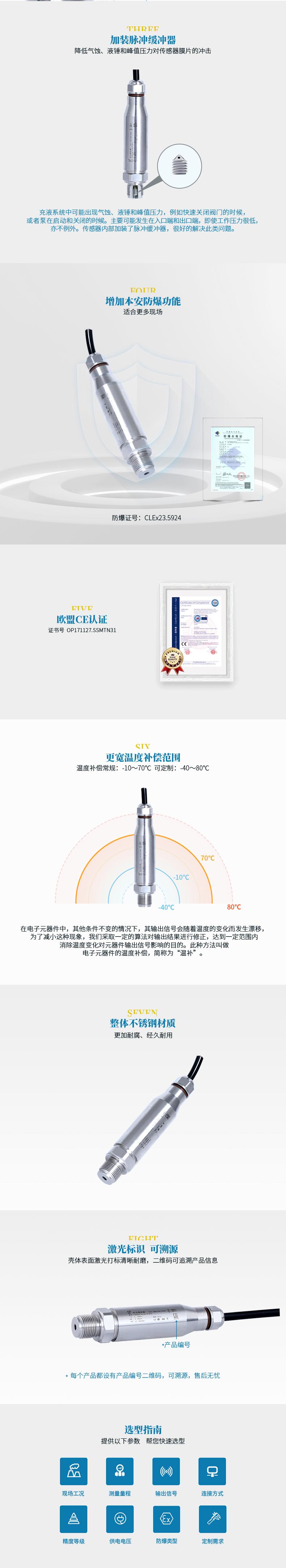 CYYZ31A壓力變送器設(shè)計精心,結(jié)構(gòu)緊湊,防護等級可達到IP68,適合應(yīng)用于潮濕或長期浸泡的壓力測量現(xiàn)場。可選本安防爆。