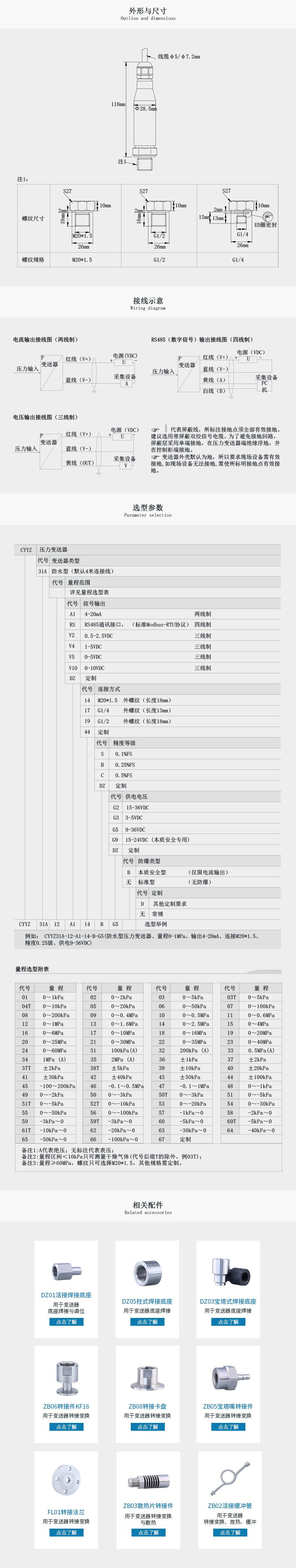 量程:-100kPa~0~60MPa (詳見量程選型表)