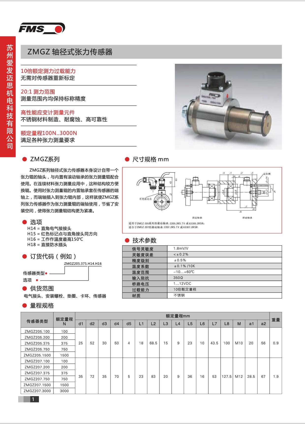 瑞士FMS 張力傳感器 LMGZ 中國總代