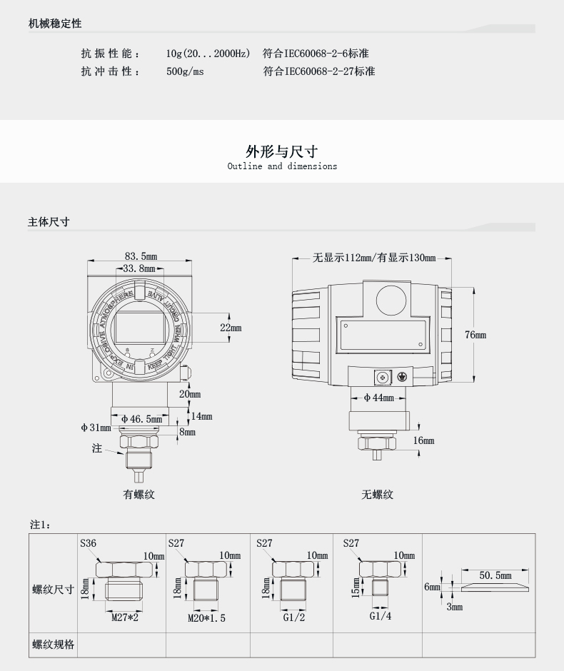 星儀CYYZ18C防爆型壓力變送器進口擴